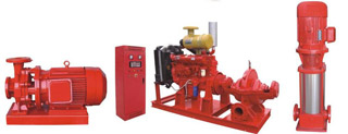 A fire pump is a part of a fire sprinkler system's water supply and powered by electric, diesel or steam. The pump intake is either connected to the public underground water supply piping, or a static water source (e.g., tank, reservoir, lake). The pump provides water flow at a higher pressure to the sprinkler system risers and hose standpipes.